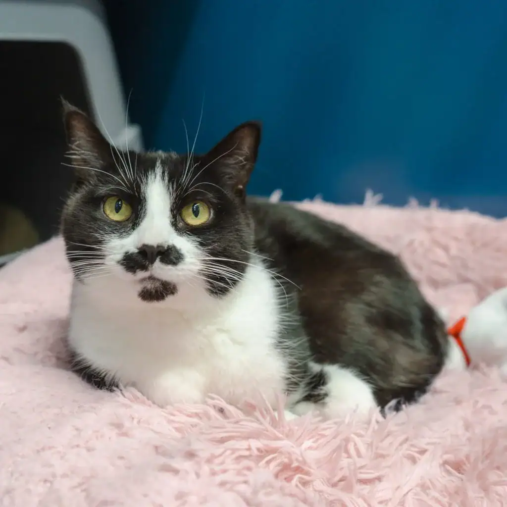 Bella was brought to OMHS in October 2024 after being found as a stray in Oakville. Since then, she has formed strong bonds with staff who describe her as playful, affectionate, and eager to please.